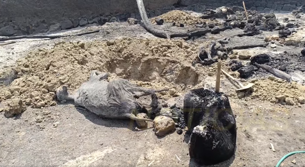 Los animales calcinados fueron enterrados en el lugar, los restos mostraban la magnitud que tuvo el incendio.