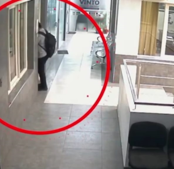 Este manipula su teléfono y tras unos minutos empieza a recorrer los pasillos del lugar, poco a poco logra ingresar a algunos de los ambientes sin ninguna dificultad aparente, ya que abre puertas entra a una oficina, llegando hasta el sector de informática de la alcaldía, donde logra sustraer una computadora portátil.