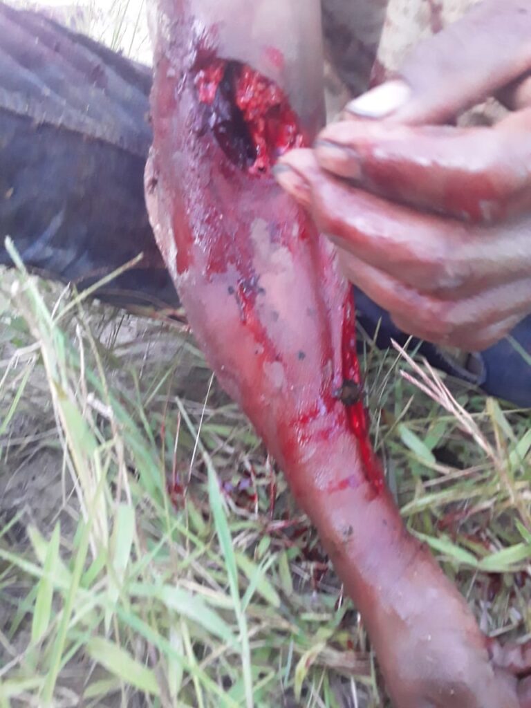 El conductor del camión llamó a la policía, quienes se constituyeron a la localidad Senda III, para evacuar al herido hasta el nosocomio más cercano ya que perdía bastante sangre de su brazo.