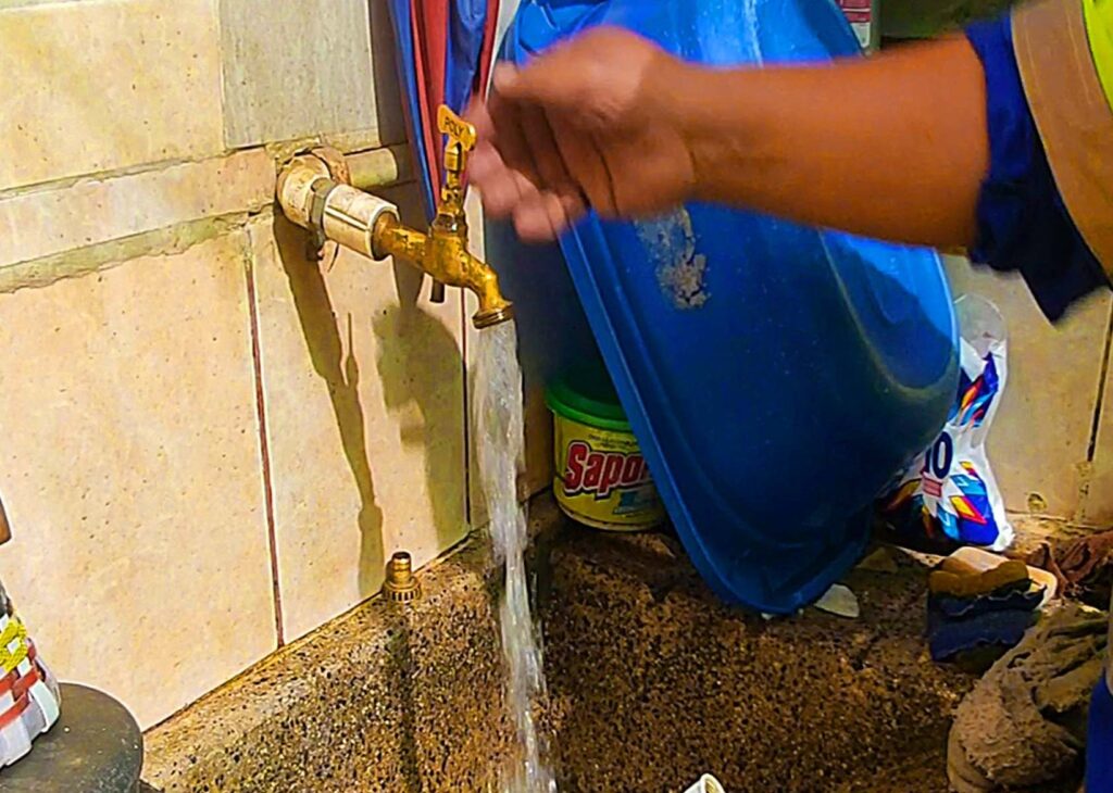 “Estaba por cocinar y he ido a lavar, a querer lavar la carne para poner a la olla, he abierto, negro el agua, sucio siempre ha salido, no he tenido que cocinar. Ha caído, pero tenía agua, otro en baldecito he recibido, con eso le he enjuagado y le he guardado”, relató.