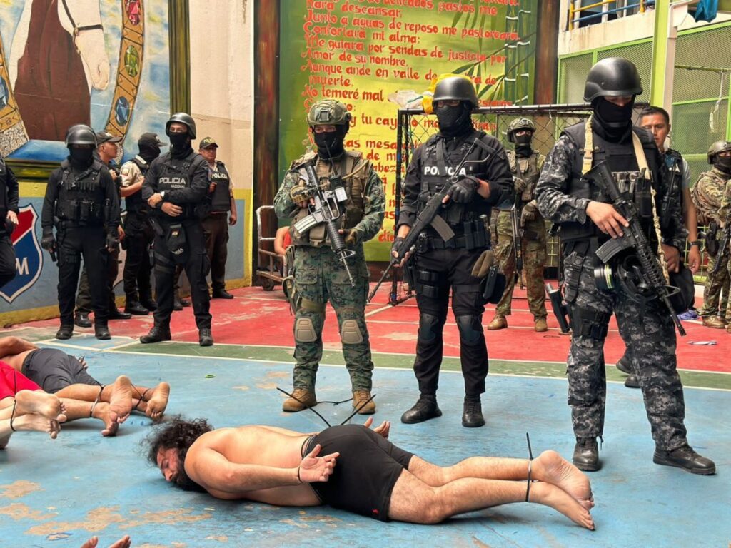 El plan de seguridad de Noboa incluye una nueva unidad de inteligencia, armas tácticas para las fuerzas del orden y seguridad y un plan para recluir a los presos peligrosos de manera temporal en barcos prisiones.