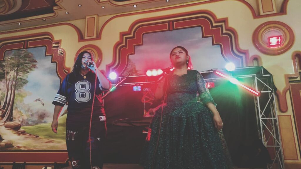 Uno podría imaginarse una escena de la película 8 Millas, en la que Eminen debe ganar la aceptación de raperos más experimentados, pero en este caso es una mujer de pollera quien se pone delante de un mundo que por lo general es dominado por varones.