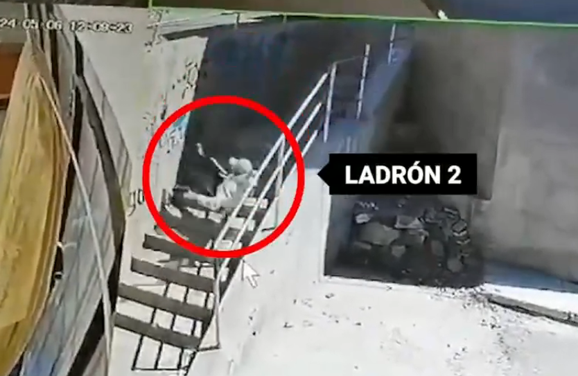 Tras conseguir su cometido, los asaltantes comienzan a correr, mientras los persigue la víctima, los ladrones bajan por unas gradas, uno logra escapar, mientras que el segundo se tropieza, cae en tres oportunidades, se golpea la cabeza con la baranda y termina en el suelo. Se levanta algo aturdido y reinicia su huida, pero es detenido a unos metros por vecinos que lo encuentran sangrando, posteriormente lo entregaron a la policía.