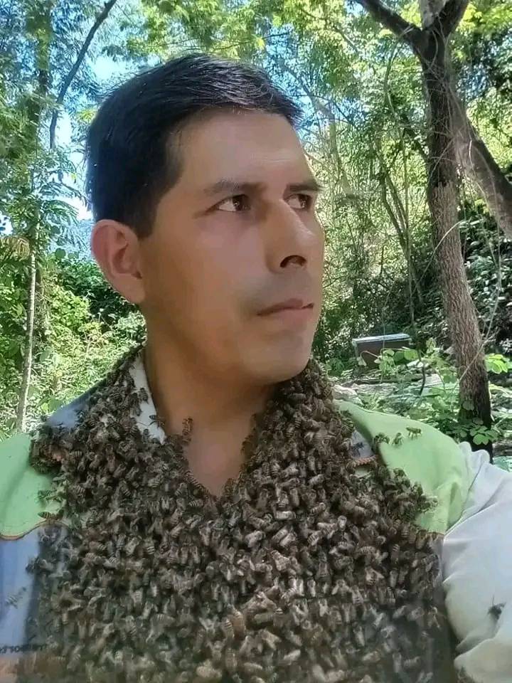 El día lunes 11 de diciembre, en el municipio de Padilla, un padre de familia asistió al acto de graduación de su hija, rodeado de sus abejas situadas en su dorso. El hombre se dedica a la apicultura.