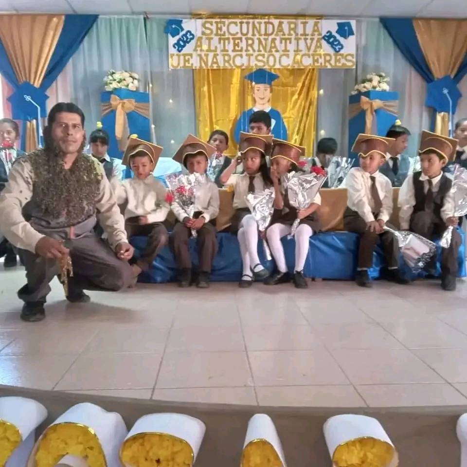 Eusebio Pinto, conocido reportero popular y apicultor del distrito de T’ihumayu – Padilla, sorprendió a la comunidad al ingresar con abejas en el cuerpo al acto de promoción del nivel inicial en la Unidad Educativa Narciso Cáceres.