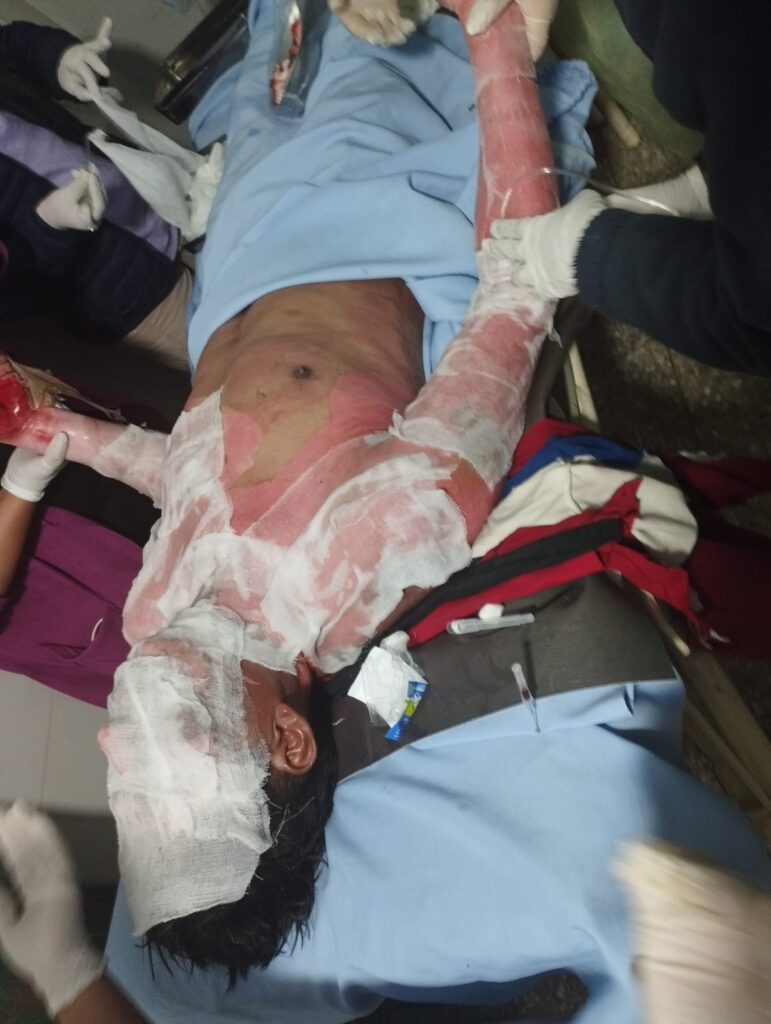 Por la gravedad de sus heridas, la víctima fue referida a la Unidad de Quemados del Hospital Viedma del Cercado.