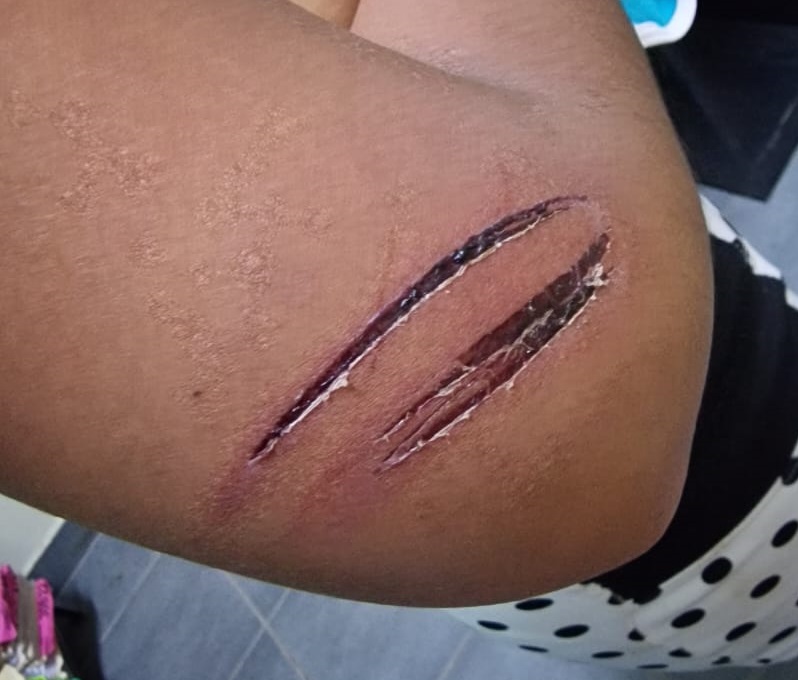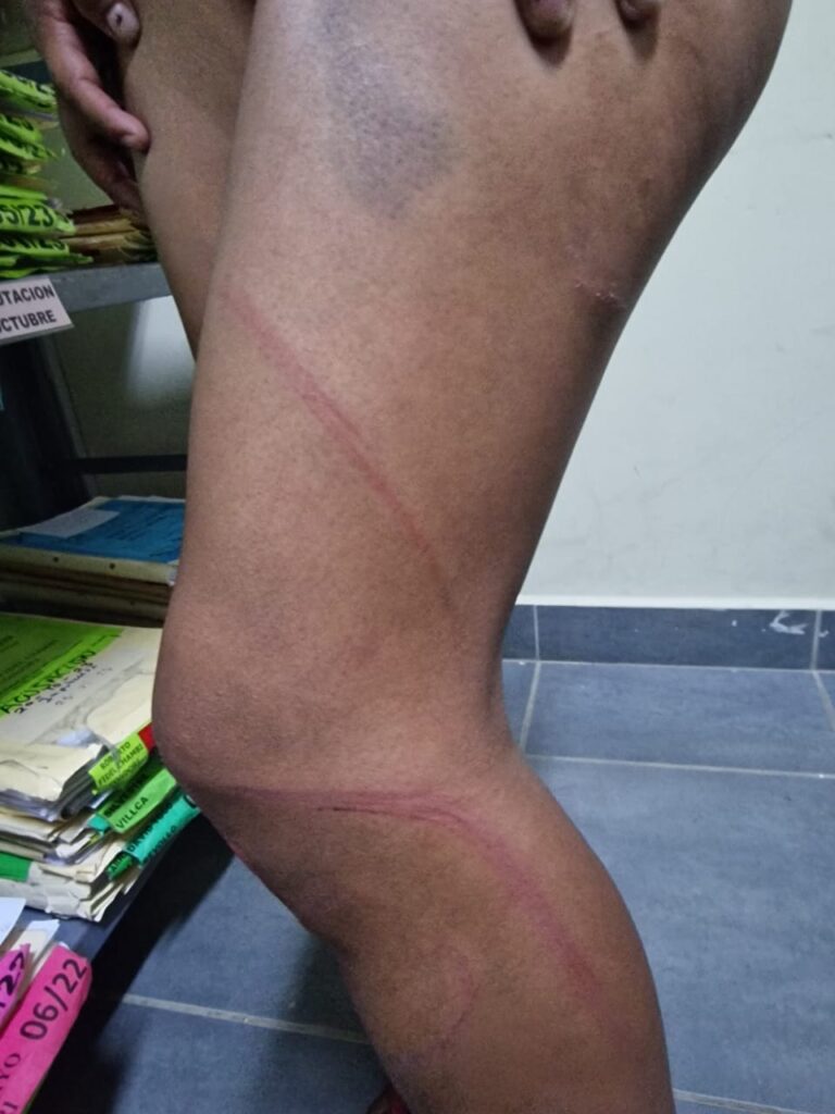 La evidencia de la violencia desmedida que ejerció de forma salvaje en su familia son las marcas que dejó en su pareja, que se extienden en todo su cuerpo, a tal punto que tiene diez días de impedimento y el pequeño dos.