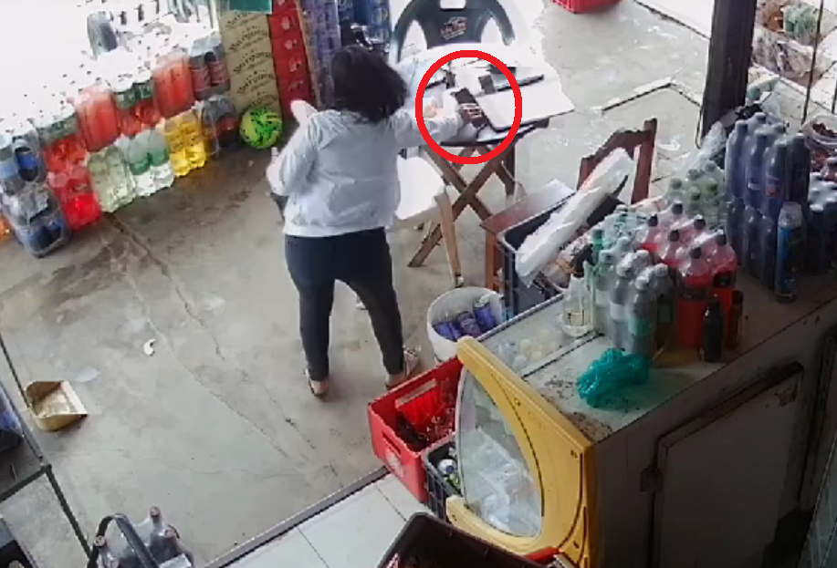 La mujer toma un celular que se encontraba en la mesa, lo guarda y luego se escapa saliendo apresurada del lugar. Poco después sale la víctima y se sorprende al no encontrar a la supuesta “clienta” y todo empeora al darse cuenta de que la mujer le robó su teléfono.