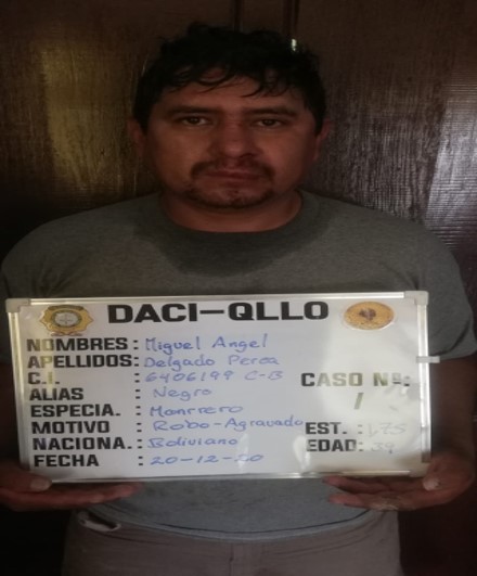El Capitán Alexander Vargas, vocero de la Fuerza Especial de Lucha Contra el Crimen (Felcc), informó que se procedió con la aprehensión de dos delincuentes con largo prontuario policial, mismos que fueron puestos a disposición del Ministerio Público para que sean sometidos a una audiencia de medidas cautelares.