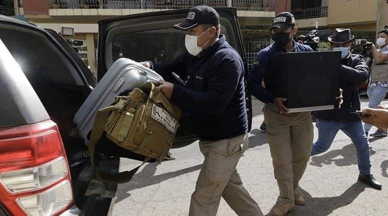 Durante los allanamientos los funcionarios ingresaron a la habitación de Daniel Aliss, que es el exesposo de Mireya, y encontraron recibos de depósitos, memorias USB y CD, computadoras, tarjetas de débito y de crédito, entre otros elementos, relató el ministro.