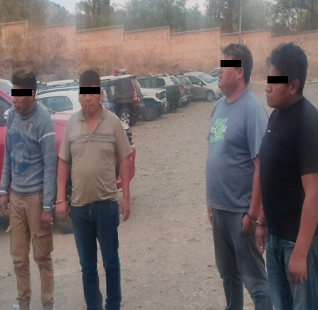 La banda delincuencial se encuentra integrada por cuatro hombres, quienes fueron identificados como Luis T.C. de 36 años de edad, alias “El Burro”, quien era el cabecilla de la banda y el responsable por ubicar los vehículos para ser robados. Alfredo L.T. de 28 años de edad, alias “El Flaco”, cuyo papel en la banda delincuencial era sustraer los motorizados. Su hermano Vladimir L.T. de 33 años de edad, alias “El Champas”, quien trasladaba los motorizados robados hasta La Paz para venderlos y finalmente un hombre de 37 años que los acompañaba.
