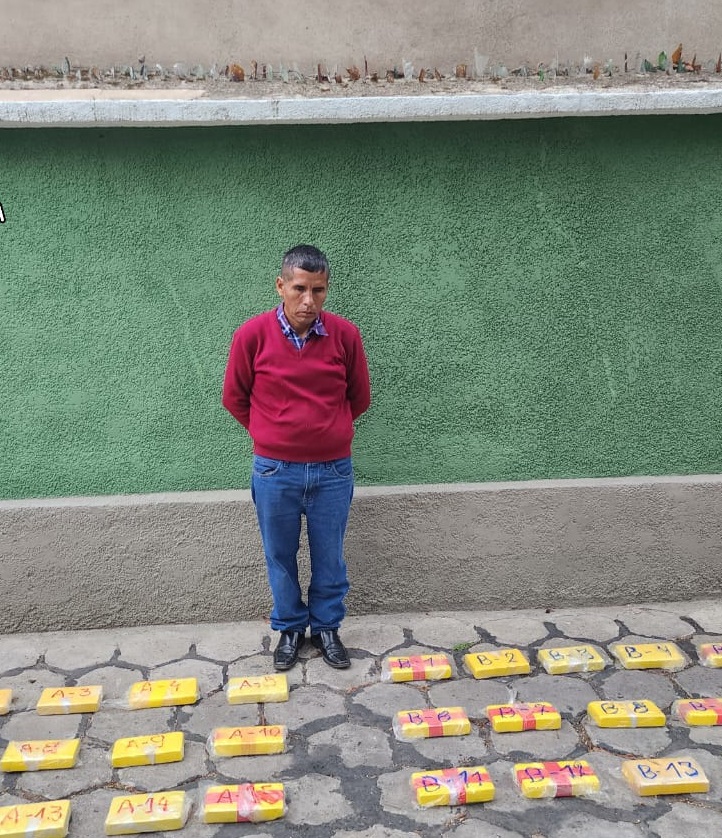 En su interior, efectivos policiales encontraron 30 paquetes de cocaína, por lo que el conductor del motorizado fue aprehendido.