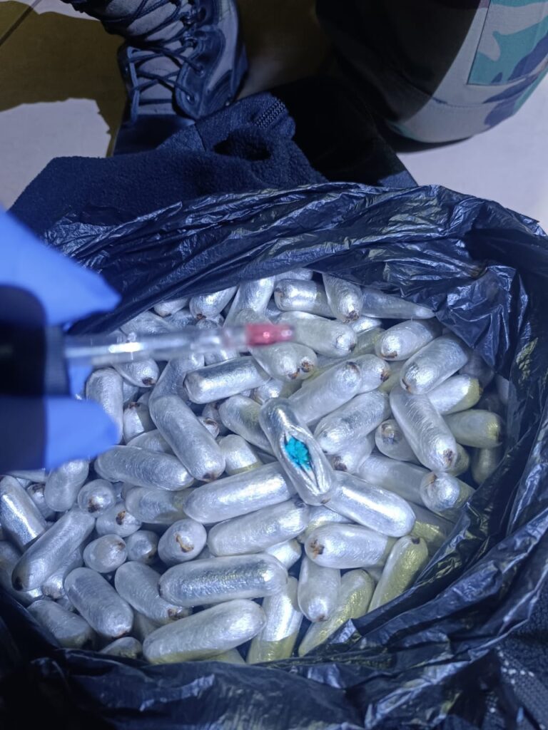 La sustancia controlada secuestrada se encontraba distribuida en pequeños envoltorios que generalmente ingieren los conocidos “tragones” para transportar drogas.