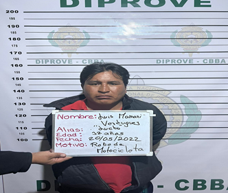 “Fue sustraída del interior de un cementerio en Colcapirhua, se organiza el patrullaje preventivo, tomando contacto con Renzo, en inmediaciones de la avenida Cabildo de la zona sur y pretende darse a la fuga y es aprehendido”, explicó el Sub Director de Diprove.