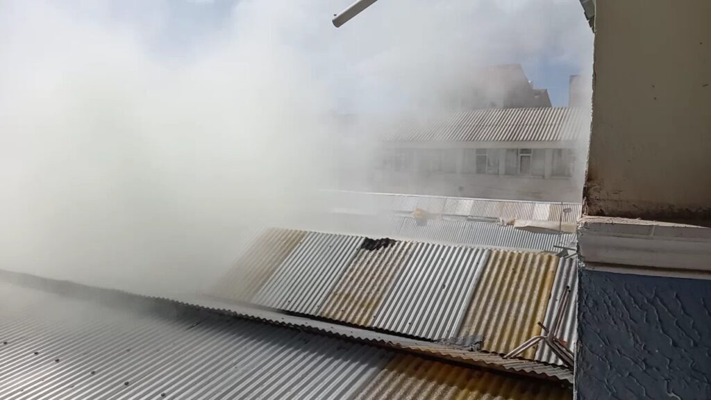 Durante la protesta del sector gremial la mala manipulación de un petardo provocó un incendio dentro el mercado central, el fuego de inmediato se extendió y aunque fue controlado afectó cerca de cuatro casetas.