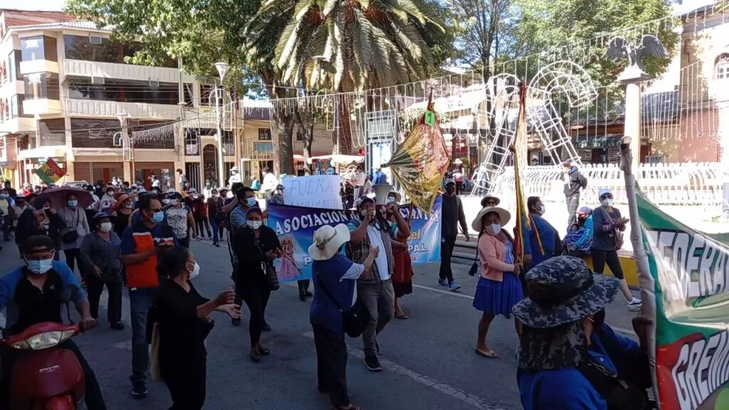 “Dentro de los mercados ya no se vende”, dijo una de las dirigentes durante la movilización que se concentró en frente del edificio municipal, en la plaza 15 de Agosto.