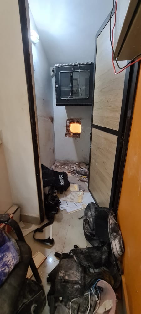 Más información sobre el presente caso da cuenta que los dos sujetos habrían ingresado en la tarde del pasado sábado, realizaron forados para llegar hasta la bóveda de la agencia financiera utilizando herramientas de construcción sin embargo fueron sorprendidos por personal d mantenimiento del cajero automático entonces se dieron a la fuga saltando techos de casas contiguas pero su fuga fue frustrada por los vecinos de la zona quienes los detuvieron y golpearon.