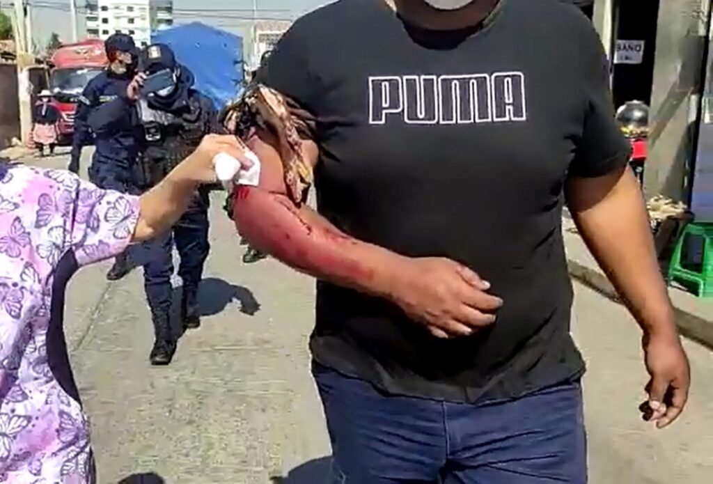 Guardias municipales de la intendencia realizaban un operativo de control verificando los avances de las comerciantes y observando la presencia de comerciantes ambulantes instalados en exteriores del mercado del Cruce Taquiña, cuando de pronto fueron agredidos.