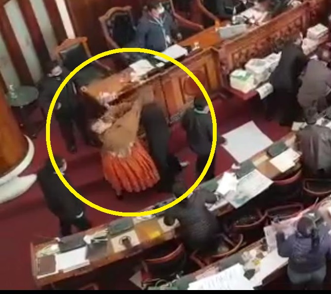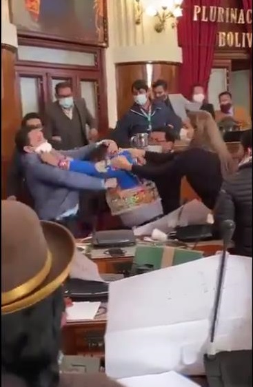 Durante el impase también se enfrentaron la diputada de Creemos (Santa Cruz) Tatiana Añez  y la diputada del MAS (El Alto) María Alanoca, los videos muestran que ambas se agarraron de los cabellos e incluso una arrastra a la otra por el suelo.