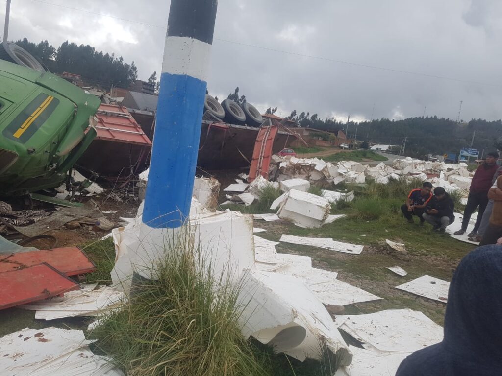 El motorizado fue trasladado hasta una posta autorizada por tránsito, mientras que la carga que transportaba quedó regada sobre toda la vía.