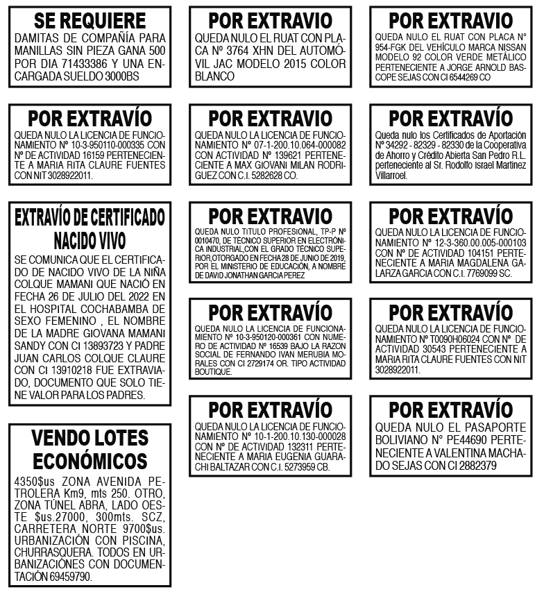 POR EXTRAVIÓ QUEDA NULO LA PLACA CIRCULACION Nº 432 – HII