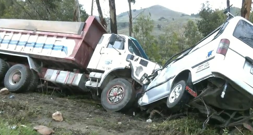 “Por razones que estamos investigando una volqueta colisiona con un minibús, de una empresa de transporte del lugar, lastimosamente hemos sufrido la muerte del conductor del minibús que por el impacto ha fallecido ya en el lugar y por los graves daños estructurales que habría sufrido el minibús los pasajeros han quedado atriccionados dentro de este vehículo, gracias a la oportuna intervención de los transeúntes, de personas que estaban pasando por este lugar, así como la pronta respuesta de nuestras unidades de emergencia se ha podido evacuar a tres heridos a diferentes centros hospitalarios”, informó el subdirector de Tránsito, Cnl. Marcelo Gómez.