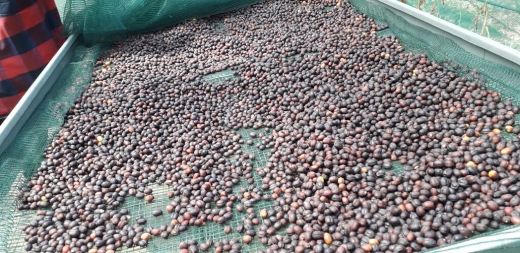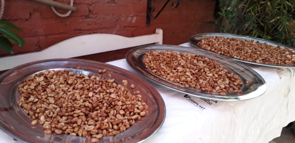Distintas variedades de café le dan un toque tropical al lugar y lo que muchos amantes de este producto nunca vieron los granos que van siendo tratados antes de llegar a ser degustados.