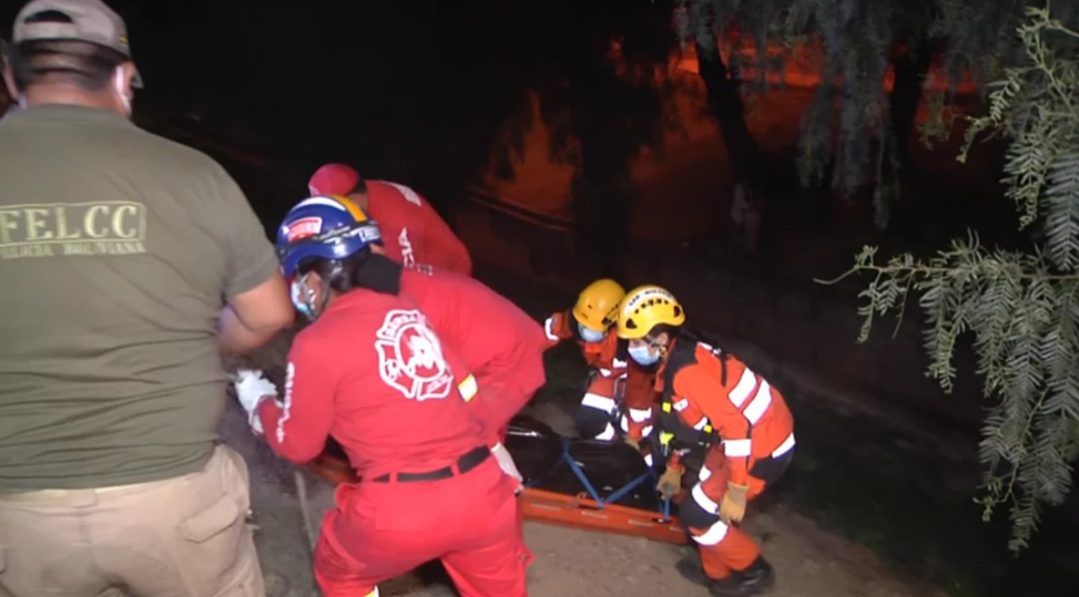 Tras algunas horas los efectivos policiales, el equipo multidisciplinario del IDIF y rescatistas del Sar Bolivia lograron sacar el cuerpo del interior de la torrentera, el cual fue trasladado hasta dependencias del IDIF.