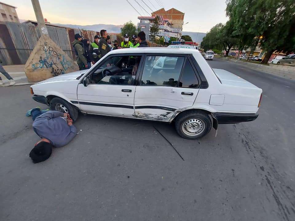 Posterior a esto los patrulleros logran capturar al vehículo objeto de persecución en inmediaciones de la avenida Nacional y Manuel Ferrufino, donde bloquean su paso y este colisiona con los vehículos patrulleros.