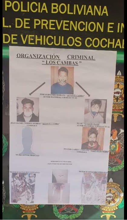 La Dirección de Prevención de Robo de Vehículos (Diprove), desarticuló a una banda delincuencial dedicados al robo de motocicletas en el municipio de Quillacollo.