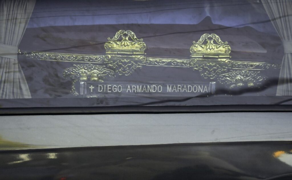 Luego de la decisión conjunta entre el Gobierno y la familia de Diego Maradona, pasadas las 17.30 comenzó el cortejo fúnebre que trasladó sus restos hacia el cementerio. A las 20 fue enterrado tras un responso íntimo que pudo ser seguido vía drone por los canales de televisión. El traslado se realizó desde la Casa Rosada, en una cápsula de seguridad, acompañado por cientos de fanáticos que siguieron el cortejo.