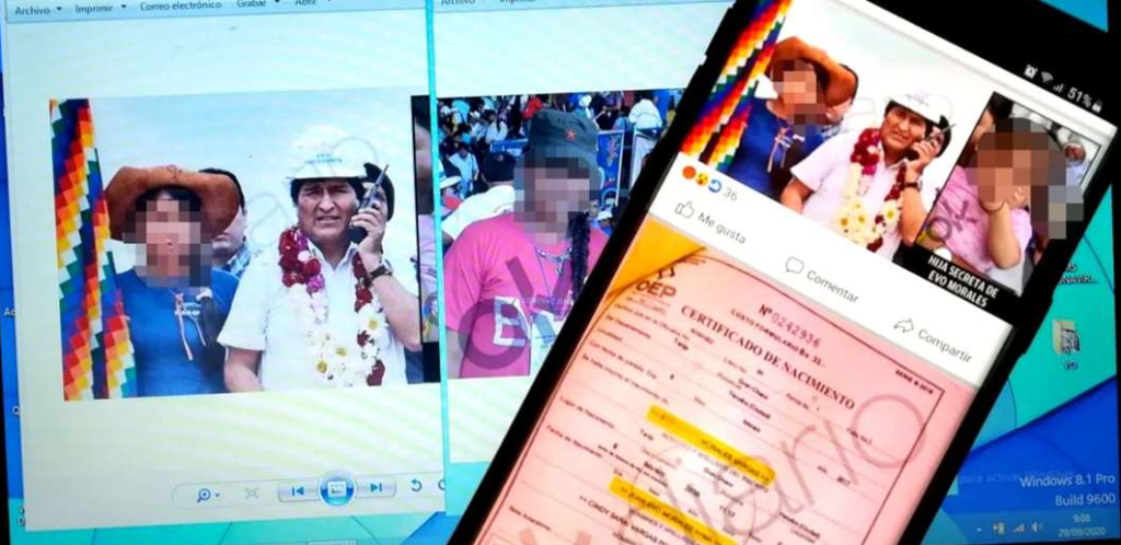 Tras la denuncia del Gobierno boliviano sobre una supuesta hija que el expresidente Juan Evo Morales tuvo con una menor de edad, aparecieron fotografías de la bebé y de la joven madre, en las que se las ve junto a otras figuras del MAS. Tales imágenes fueron difundidas por el periodista Alejandro Entrambasaguas en el medio español OK Diario.