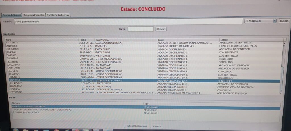 Recalca que la juez tiene varias denuncias en su contra: “son un cúmulo de denuncias que tiene que tiene esta abogada, entre ellas faltas graves y gravísimas, tiene también prevaricatos y ahora esta abogada no es la primera vez que hace esto es una reincidente porque da sentencias contra la ley”, asevera.