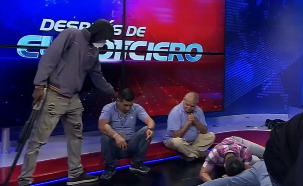 Uno de los criminales encapuchados expresó ante la cámara: “Para que sepa que no se deben jugar con las mafias”. Acto seguido, obligaron a uno de los conductores del noticiero a pedir que se retire la Policía del lugar.