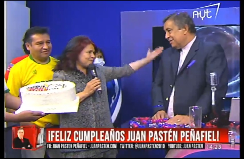 Resulta que Pastén estaba a punto de terminar su programa y presentó la última nota, pero de pronto todo oscureció y hubo un silencio, hasta que casi todos los trabajadores de esa casa televisiva y la gerente de AYT, ingresaron al estudio cantando ‘cumpleaños feliz’, luego de las felicitaciones, llegó el momento de soplar la vela y ahí la gerente no perdió la chance y de un empujón en la cabeza hacia la torta, provocó el famoso tortazo.