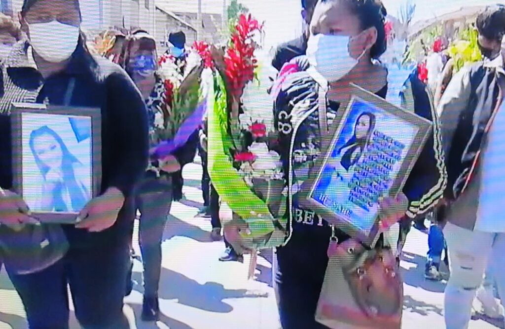 En el cementerio Campo Santo de Falsuri, la mañana del martes docenas de personas entre familiares, amigos, vecinos, mujeres de fuego, incluso gente que no eran alegadas a la víctima acompañaron en la misa de cuerpo presente y posterior caminaron por varias cuadras para llegar al campo santo para enterrar los restos óseos de la joven Betsabé, quién fue asesinada por un funcionario policial.