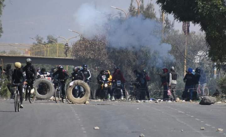 Enfrentamientos violentos en la carretera que conecta a Cochabamba con Quillacollo, sobre el kilómetro 10 de la avenida Blanco Galindo. Donde el grupo denominada Resistencia Kochala intervienen y desbloquean. Informan que la Policía ya se moviliza para evitar enfrentamientos.