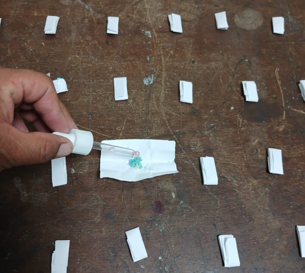 Tras una revisión de sus pertenencias se encontraron en su poder 117 sobres pequeños que contenían una sustancia blanquecina que luego de realizar la prueba de campo dio positivo a cocaína.