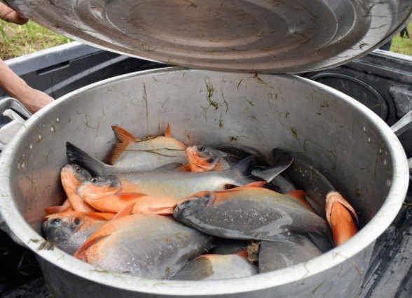 Morales, acompañado de varios pobladores del lugar y mineros de una cooperativa de Quillacollo, fueron los que jalaron el enmallado de la piscina para juntar los tambaquis. En una primera instancia 250 kilos; sin embargo Jhony Rapu, indicó que se llegaría a la tonelada de pescados.