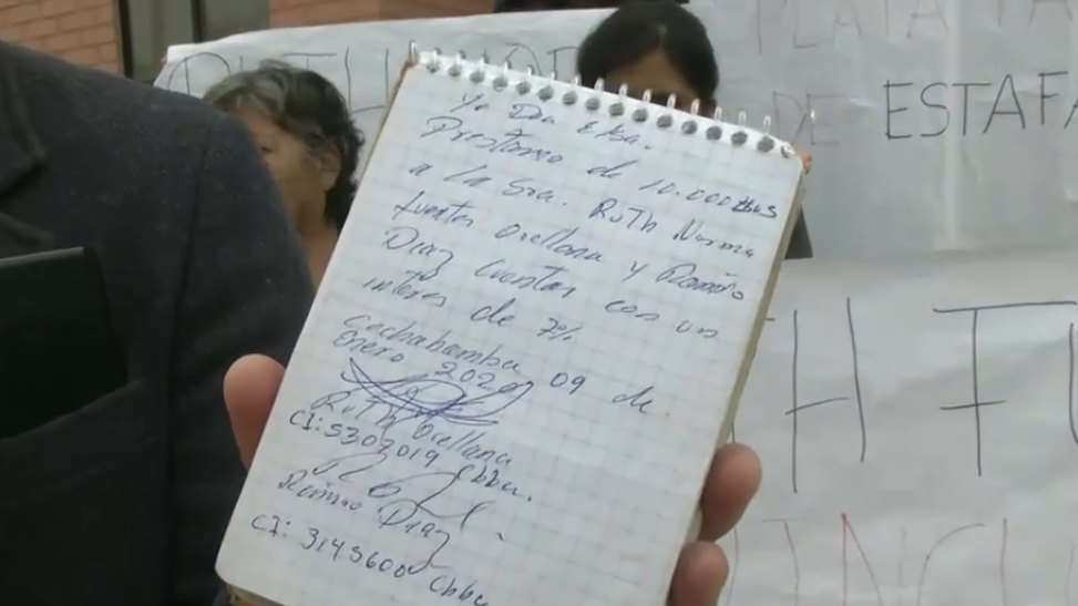 “12 mil bolivianos, préstame y te voy a dar su interés más, me dijo y no me ha dado, llamamos y nunca contesta, nos bloquea, nunca viene y no da la cara”, aseguran las víctimas.