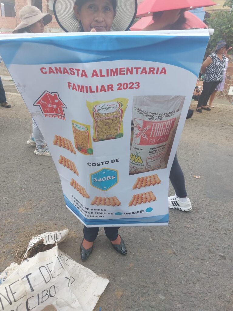 “La primera vez que nosotros hemos cancelado para el tema de los víveres hemos sido 350 personas, yo vengo de Punata, la gente donde vivo son gente bien humilde que han puesto pensando que, si les van a ayudar”, contó una de las representantes.