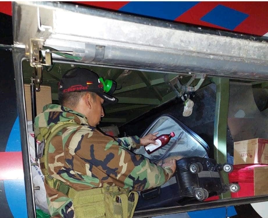 Cerca a las dos de madrugada efectivos policiales interceptaron un motorizado que se dirigía hacia el departamento de La Paz, donde se identificaron dos maletas que contenían envases de limpieza, energizantes, entre otros que en su interior contenían sustancias controladas.