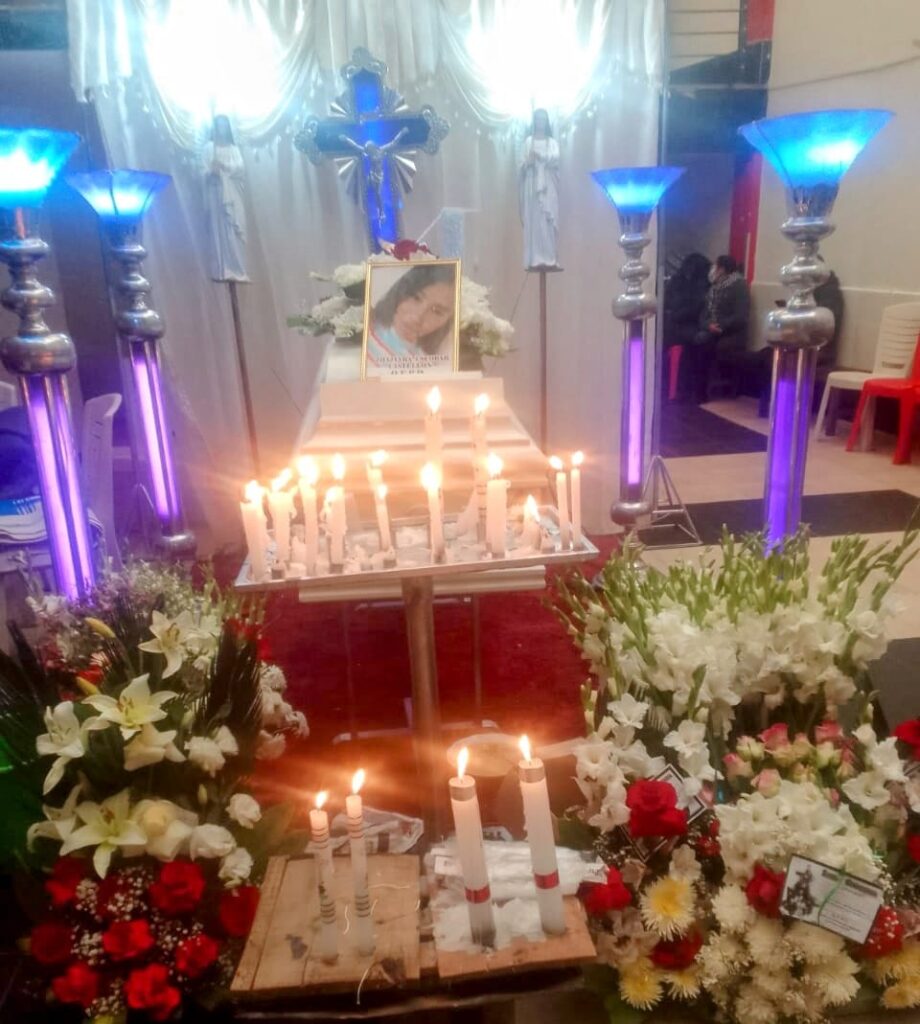 Familiares, vecinos y amigos velan los restos de la joven estudiante en la localidad de Huanuni, desde donde llegó a Cochabamba para estudiar en la universidad al ser destacada en sus estudios.
