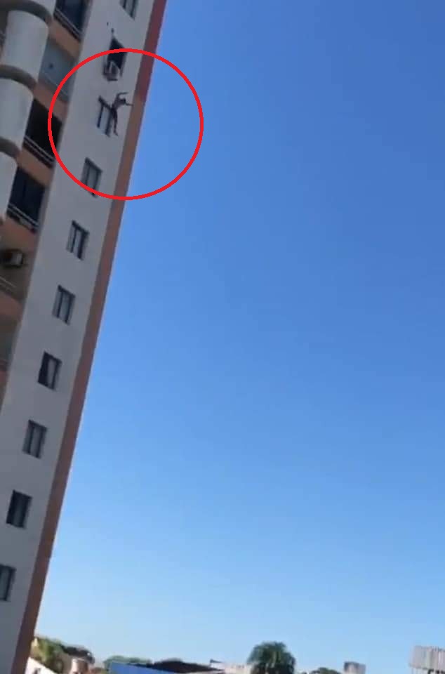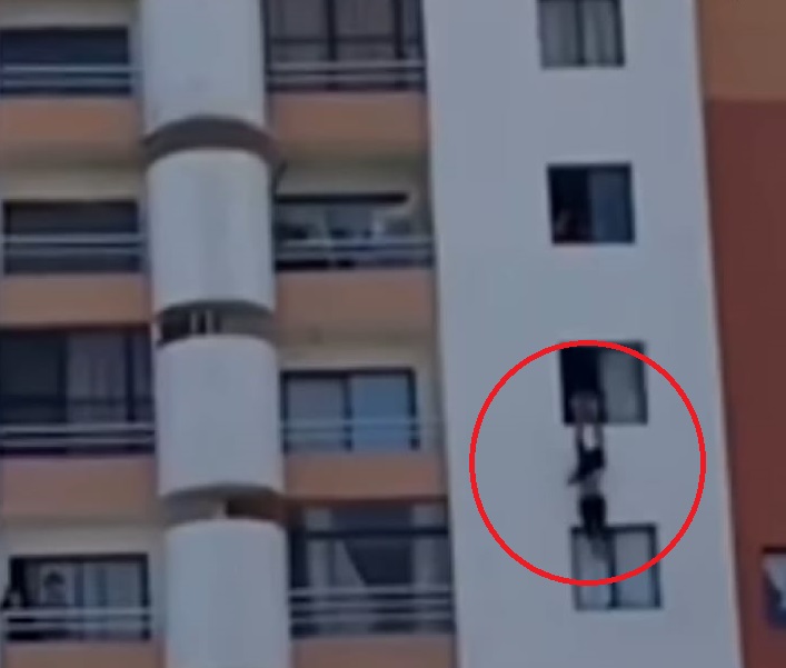 Varios videos captados por habitantes del condominio mostraron el momento cuando el modelo colgaba de la ventaba del apartamento intentando ser auxiliado por un vecino que no pudo evitar la desgracia