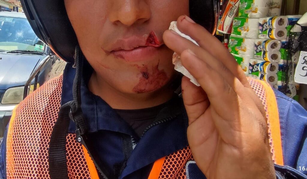 Mientras guardias de Tráfico y vialidad del municipio de Sacaba realizaban un operativo de control verificando los parqueos tarifados en inmediaciones de paradas de transporte público y mientras realizaban esta tarea, uno de los funcionarios fue agredido brutalmente.