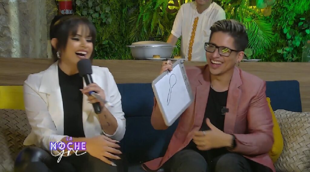 Uno de los momentos más festivos, fue cuando Quiroga les preguntó a los dos (ambos tenían una pizarrita) sobre cuál era su posición favorita, ahí Zegarra dice “lo puedo dibujar”, donde la respuesta de la conductora fue “ya, dibujá mamita, dibujá”.