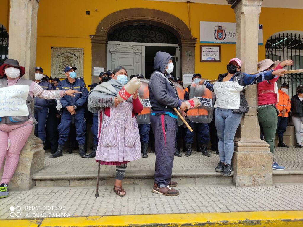 La posición de la Alcaldía de Cochabamba es clara, evitar el retorno del comercio a la zona para poder ordenar las aceras del centro de la ciudad para los peatones. La municipalidad planteó al menos cuatro lugares para que los puestos sean trasladados; sin embargo hay rechazo de los comerciantes.