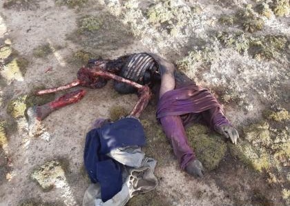 Las imágenes reflejan el estado de descomposición, las extremidades inferiores fueron devoradas por los canes hambrientos del lugar, quedando solamente los huesos, al igual que las extremidades superiores.