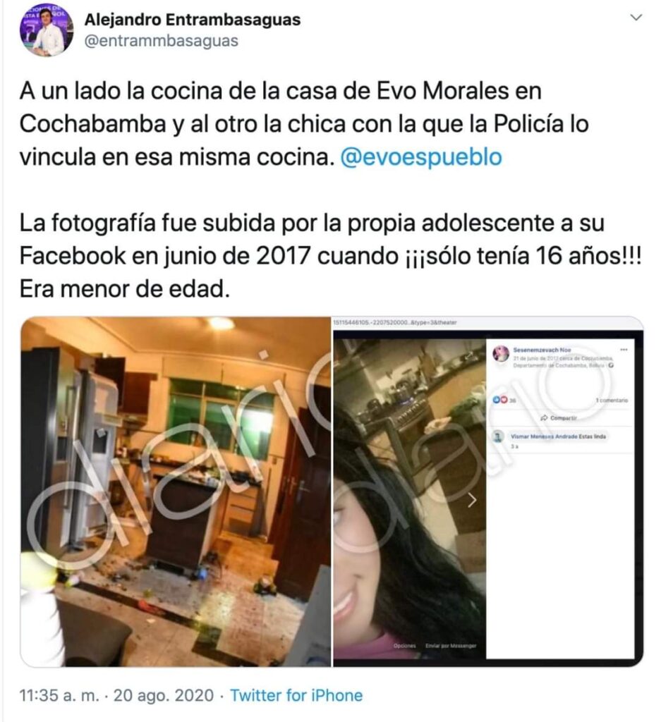 ¿Acaso querían más pruebas concluyentes? Antes de que Noemí Meneses eliminará sus fotos de su Facebook, muchos internautas pudimos realizar capturas de pantalla. En Ok Diario hicimos publica una de ellas que situaría a Noemí Meneses en una de las casas de Evo Morales Ayma (Cochabamba), ya en el año 2017. Saque usted las cuentas, considerando que Noemí acaba de cumplir 19 años a la fecha del 2020.