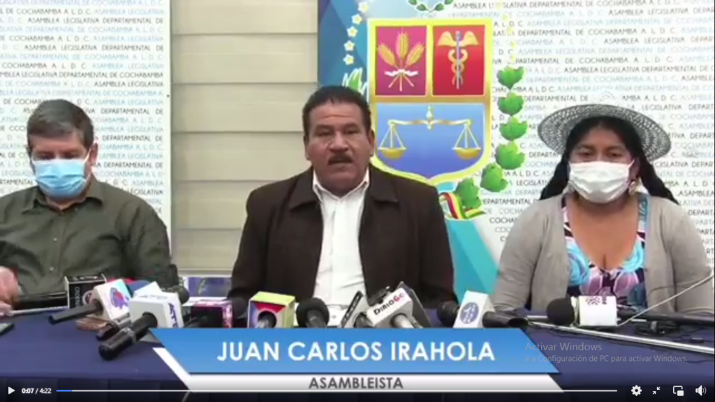 “Este viaje que está pensando realizar, porque creemos que por el tiempo ya no tuviese sentido, de que es muy coincidente, tenemos a la alcaldesa de El Alto que está viajando a Estados Unidos, tenemos un alcalde de Cochabamba que también está viajando, nos hace sospechar a nosotros, que entre otras cosas, estuviesen yendo nomás a recibir algún tipo de instrucción del gobierno de Estados Unidos”, explicó Irahola.